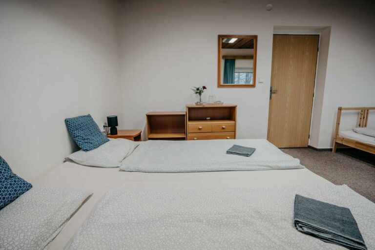 Rezervace vám zabere jen chviličku a svůj termín si můžete vybrat prostřednictvím formuláře níže nebo nás kontaktujte. Stačí si zvolit pokoj a počet osob a okamžitě uvidíte i výslednou cenu za ubytování. Jednoduché, že? A pokud máte raději všechno „černé na bílém“, můžete si stáhnout náš ceník a podívat se na detaily.